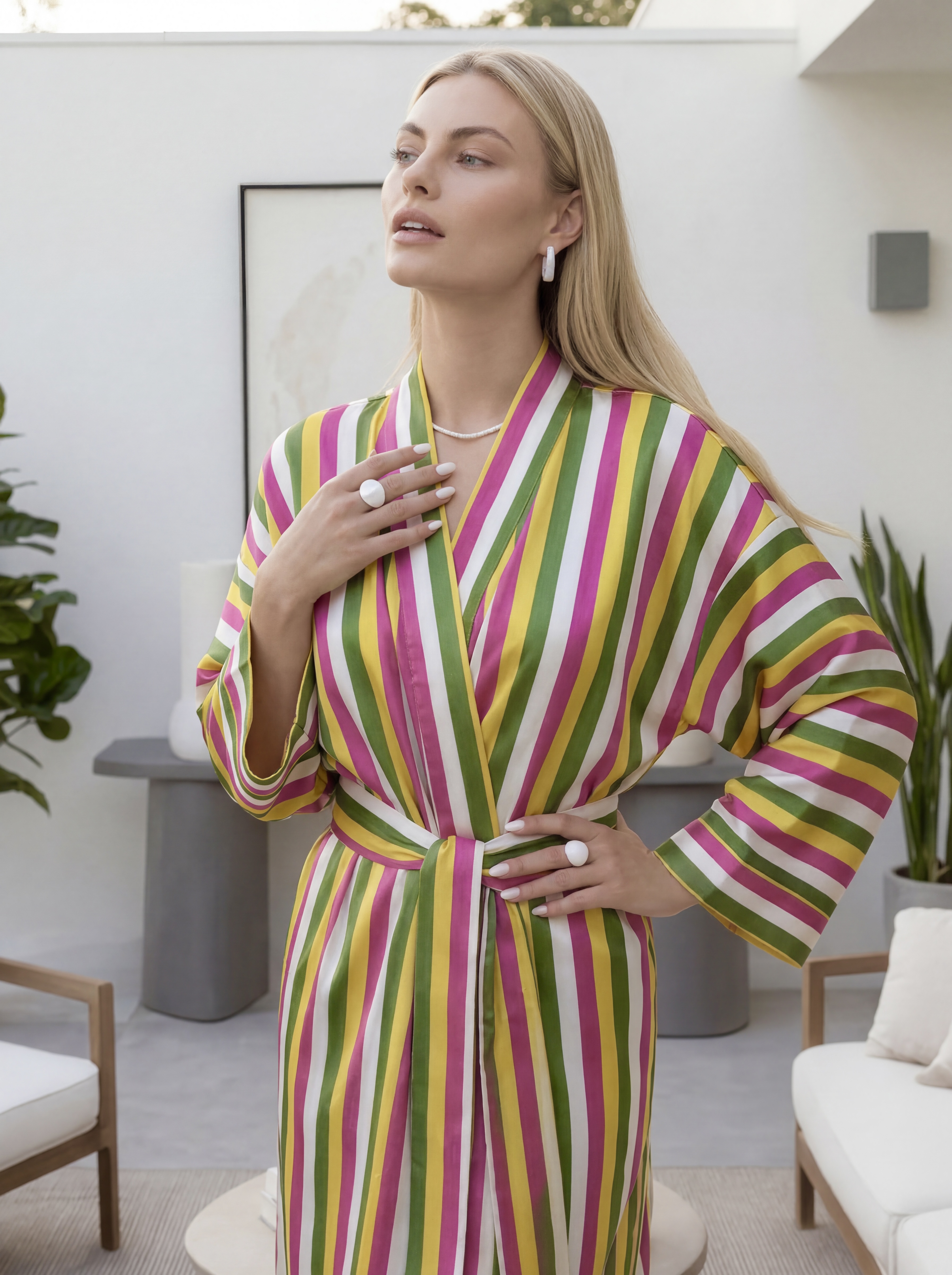 Халат из 100% шелкового адраса — это инвестиция в ваше самоощущение. Носите его как вечернее кимоно, дополняя лодочками, или превратите утро в ритуал красоты, накинув его сразу после пробуждени.
